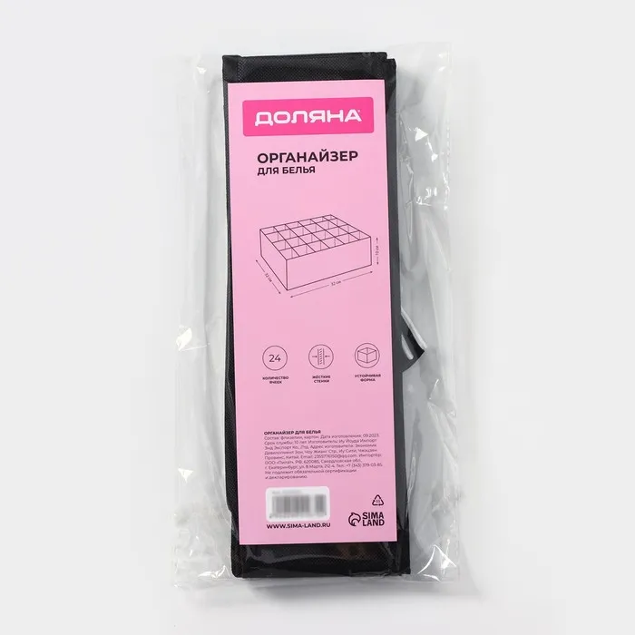 Органайзер для хранения белья Доляна «Смарт», 24 ячейки, 32×32×10 см, чёрный — Характеристики