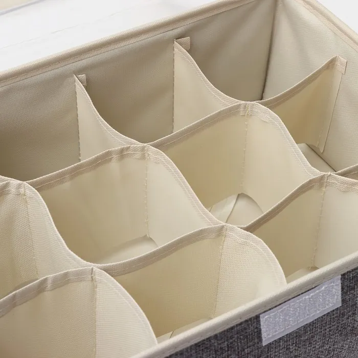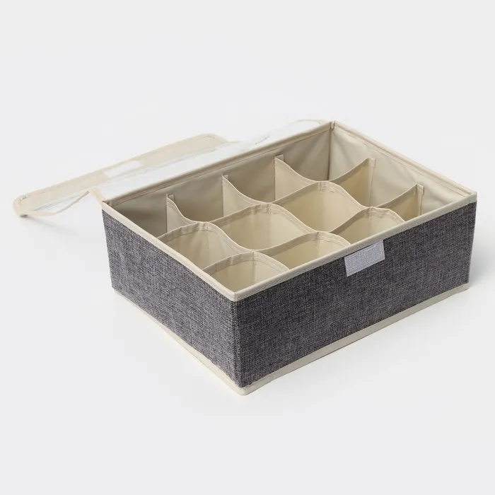 Органайзер для хранения белья Доляна «Тео», 12 ячеек, с прозрачной крышкой, 32×23×12 см, серый — Характеристики