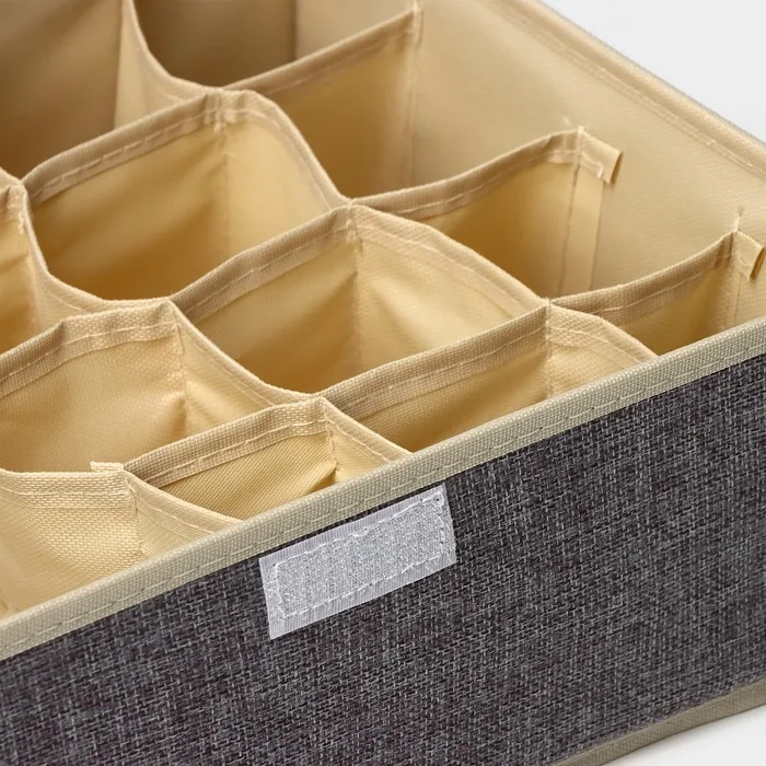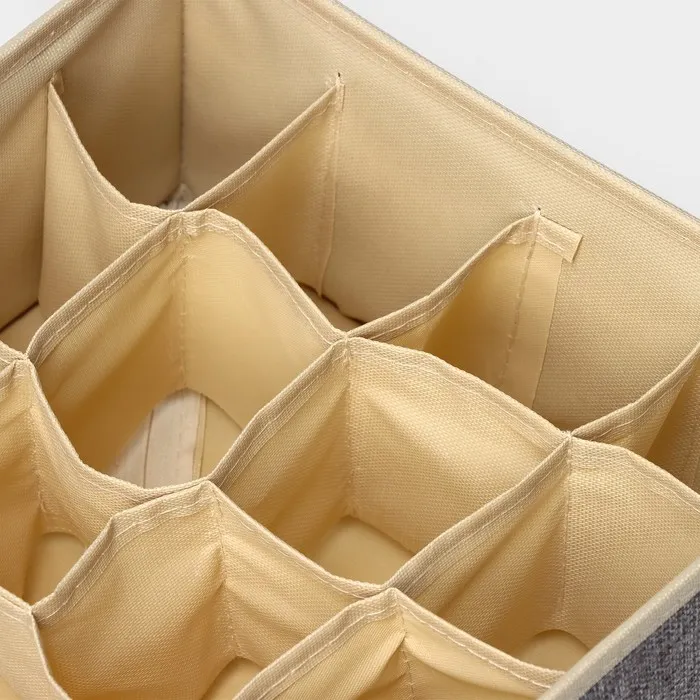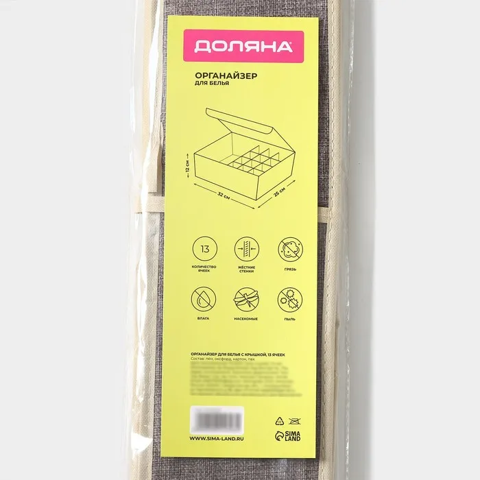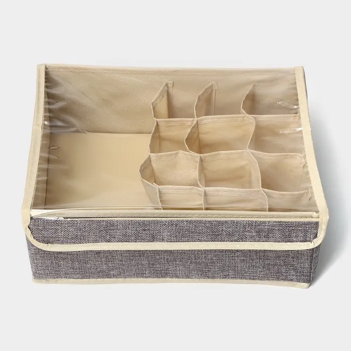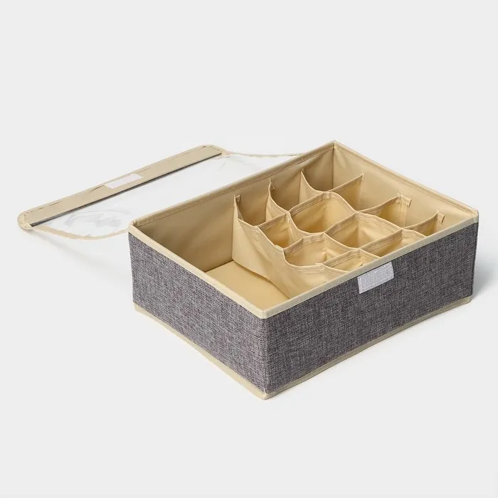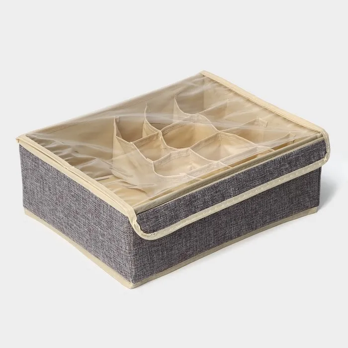 Органайзер для хранения белья Доляна «Тео», 13 ячеек, с прозрачной крышкой, 32×23×12 см, серый — Характеристики