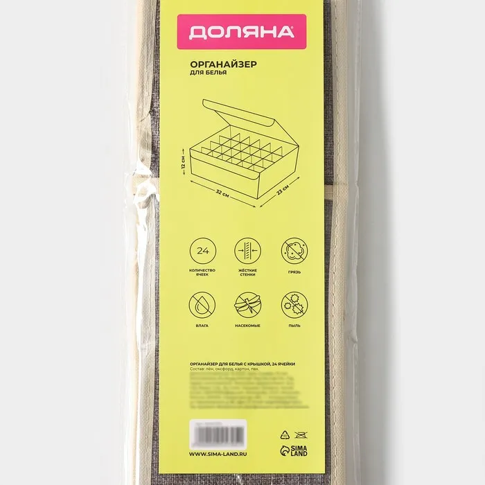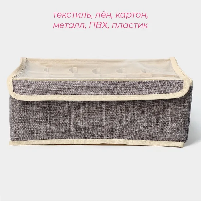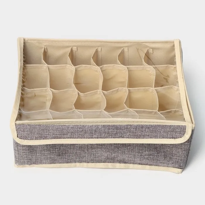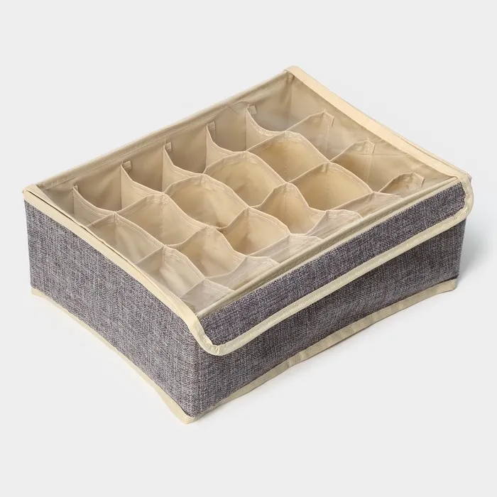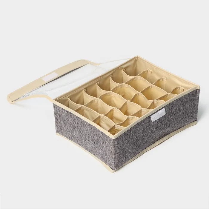 Органайзер для хранения белья Доляна «Тео», 24 ячеек, с прозрачной крышкой, 32×23×12 см, серый — Характеристики