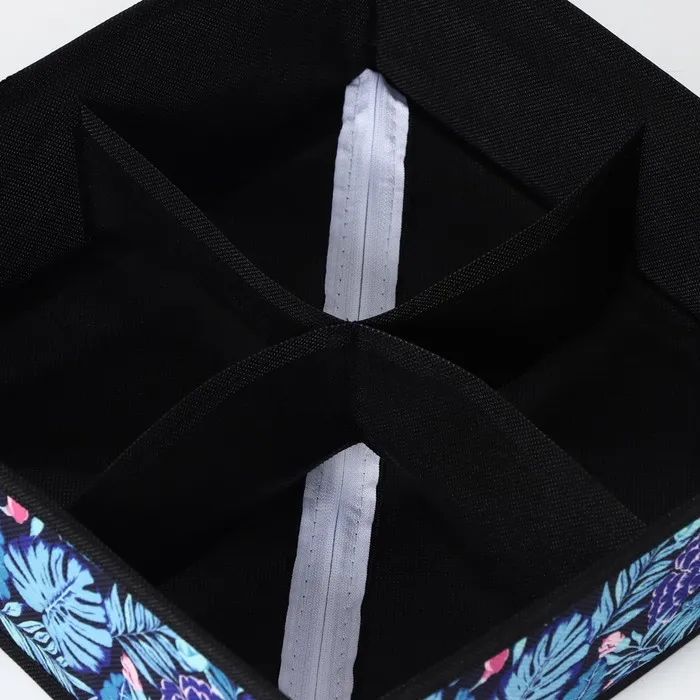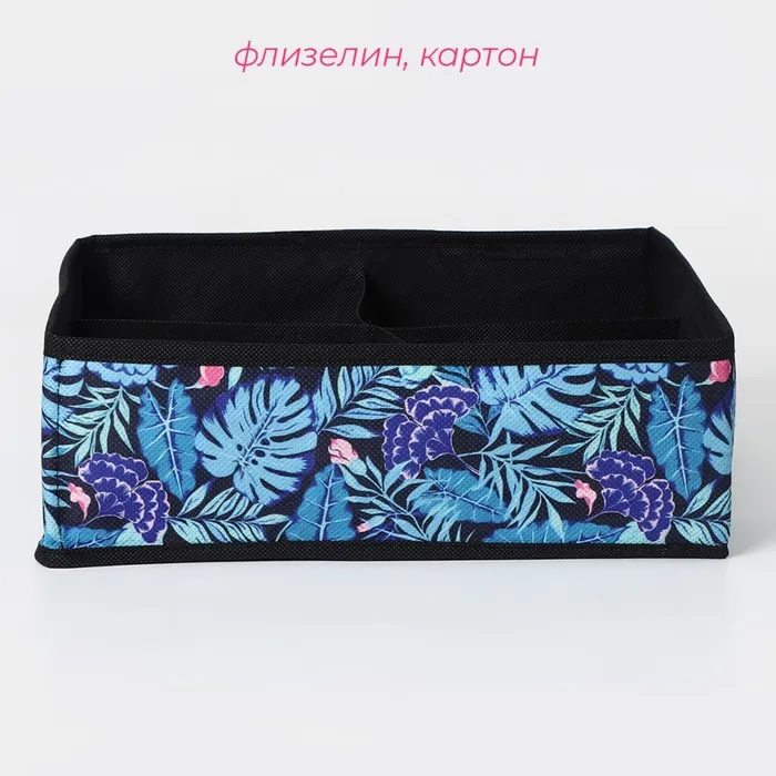 Органайзер для хранения белья Доляна «Тропики», 4 ячейки, 29×29×10 см, синий — Характеристики