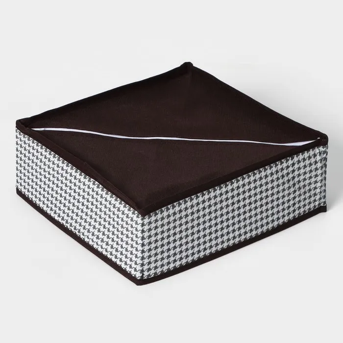 - Прямоугольный короб с легкостью поместятся на полке в многоярусном шкафу, секционном шкафчике и даже прикроватной тумбочке.