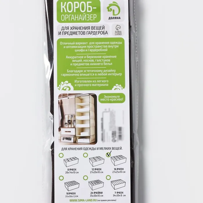 Органайзер для хранения белья Доляна «Вилли», 16 ячеек, 27×25×10 см, бело-коричневый — Характеристики