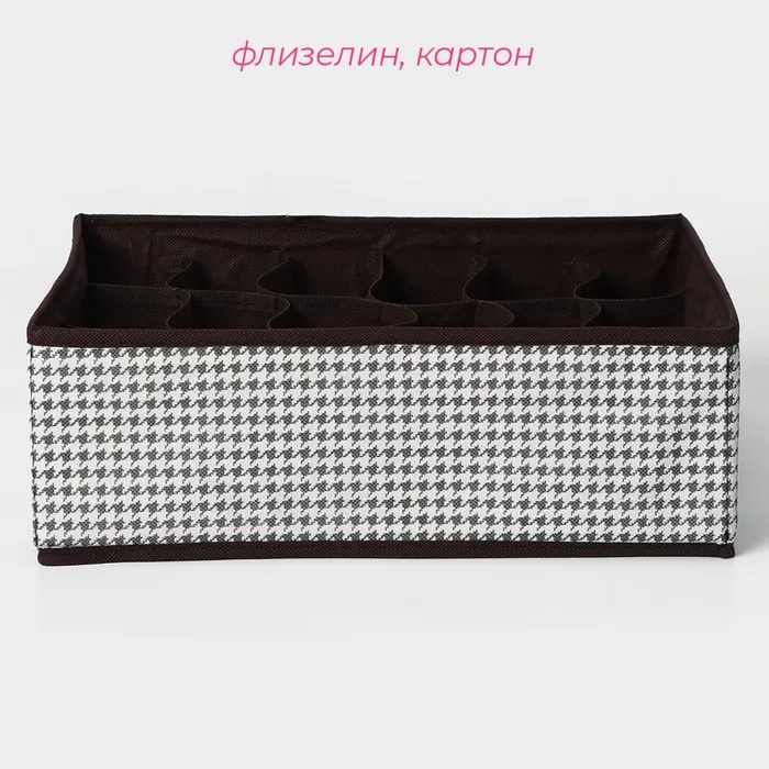 Органайзер для хранения белья Доляна «Вилли», 18 ячеек, 35×30×12 см, бело-коричневый — Характеристики