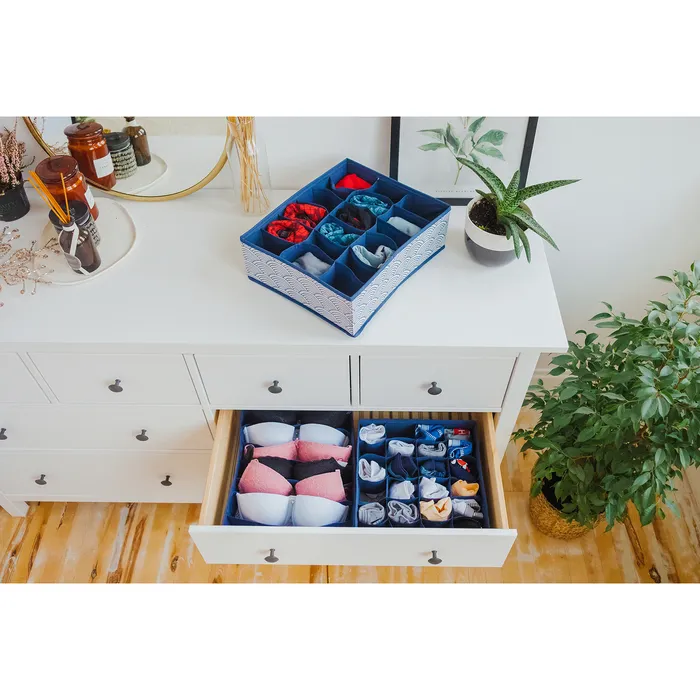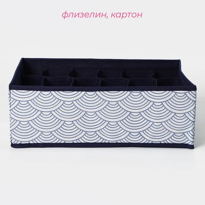 Органайзер для хранения белья Доляна «Волна», 18 ячеек, 35×30×12 см, синий — Характеристики