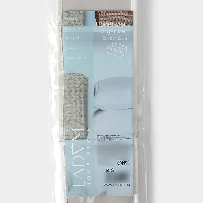 Органайзер для хранения белья LaDо́m, 12 ячеек, 32×24×12 см, серый — Характеристики