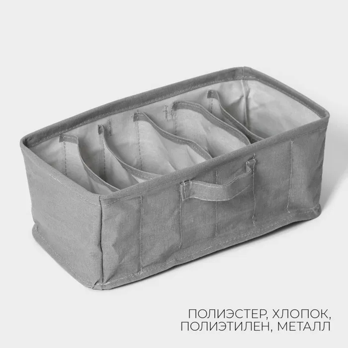 Органайзер для хранения белья LaDо́m, 6 ячеек, 32×17×12 см, серый — Характеристики
