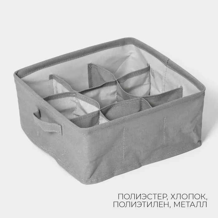 Органайзер для хранения белья LaDо́m, 9 ячеек, 28×28×11 см, серый — Характеристики