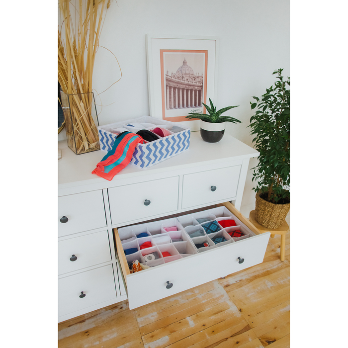 Органайзер для хранения белья «Зигзаг», 24 отделения, 32×32×12 см, цвет синий — Характеристики