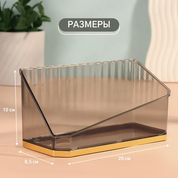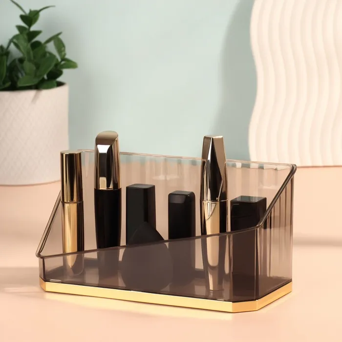 Ищете стильное и функциональное решение для хранения косметики и мелочей? Органайзер «CALM» станет вашим незаменимым помощником в создании идеального порядка. С одной секцией и компактными размерами (20 x 8,5 x 10 см), этот органайзер подходит для хранения различных предметов: косметики, канцелярии, бытовой химии и многого другого. Его универсальный дизайн и сочетание полупрозрачного, черного и золотистого цветов прекрасно впишутся в любой интерьер, будь то домашний кабинет, ванная комната или салон красоты.