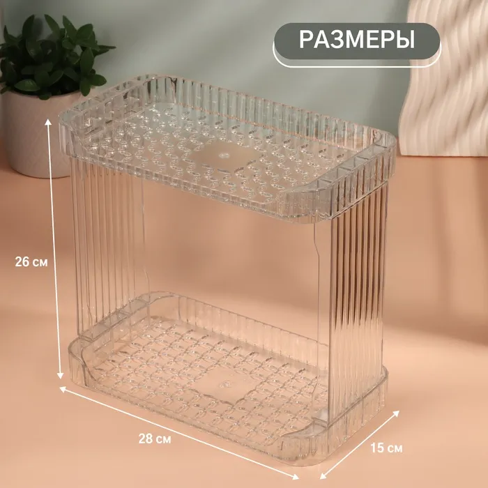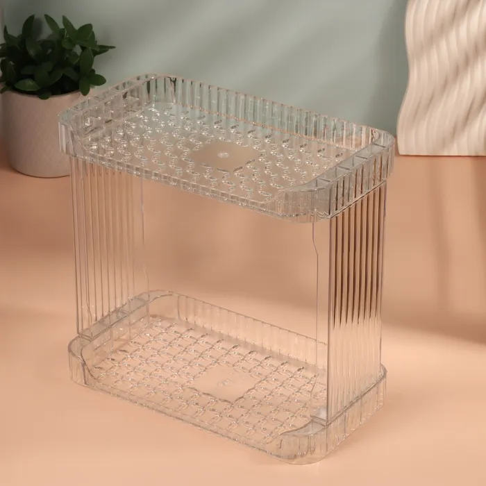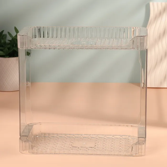 Практичный органайзер для хранения от QF — это ваш ключ к порядку и организованности. С двумя просторными секциями и элегантным прозрачным дизайном, он гармонично впишется в любой интерьер, будь то спальня, ванная или рабочий кабинет. Благодаря продуманной конструкции, этот органайзер идеально подходит для хранения косметики, маникюрных инструментов, аксессуаров и даже бижутерии.