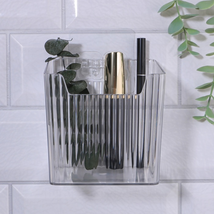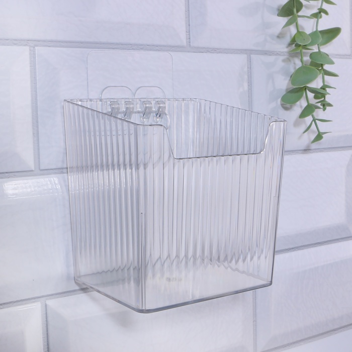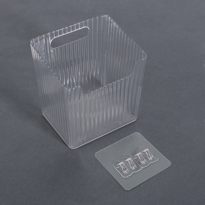Органайзер для хранения «CRISTAL», навесной, 1 секция, с клеевыми крючками, 11.5×8×11 см, прозрачный — Характеристики