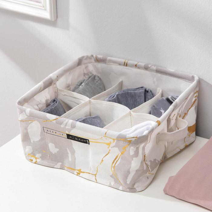 Органайзер для хранения Доляна «Мрамор», 6 отделений, 28.5×28.5×12 см, цвет серый — Характеристики