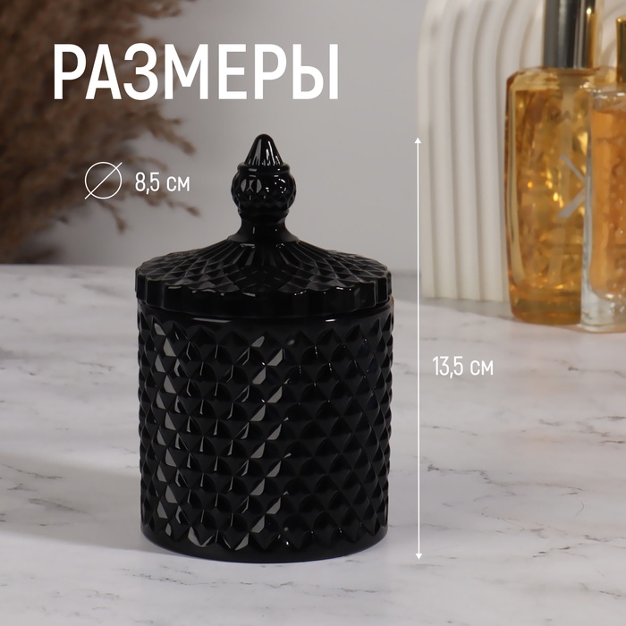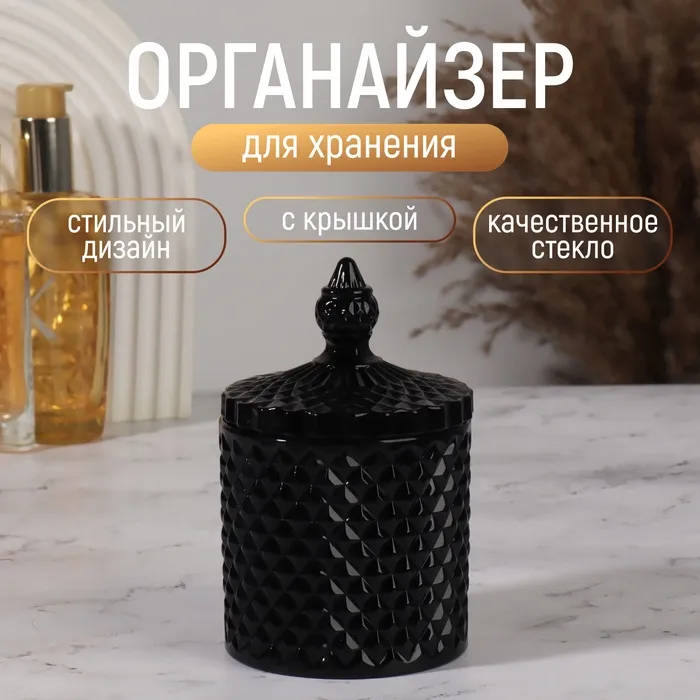 Органайзер для хранения «Элит», шкатулка для украшений с крышкой, d=8.5×13.5 см, чёрный — Характеристики