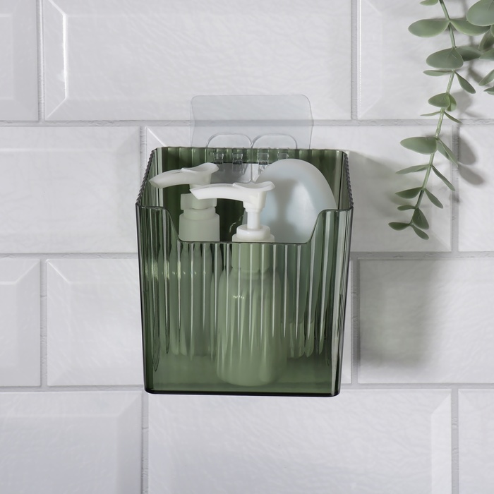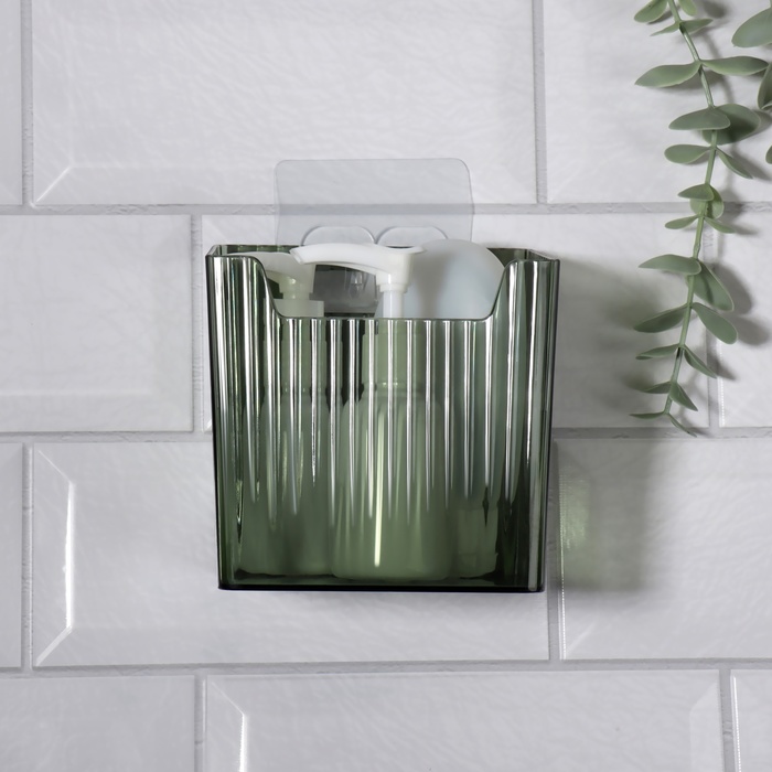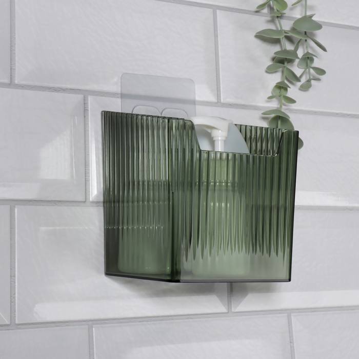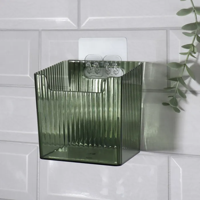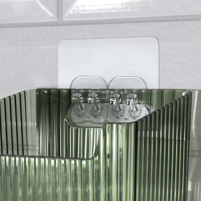 Органайзер для хранения «GREEN», навесной, 1 секция, с клеевой основой, 11.5×8×11 см, полупрозрачный, зелёный — Характеристики