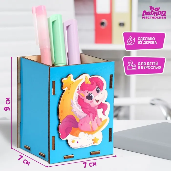 Деревянный органайзер для канцелярии «Сказочный единорожка» — это практичный и стильный аксессуар для рабочего стола. Он не только помогает поддерживать порядок, но и добавляет яркий акцент в интерьер. Подставка подходит для хранения ручек, карандашей и других мелких предметов, делая её универсальным решением для детей и взрослых.