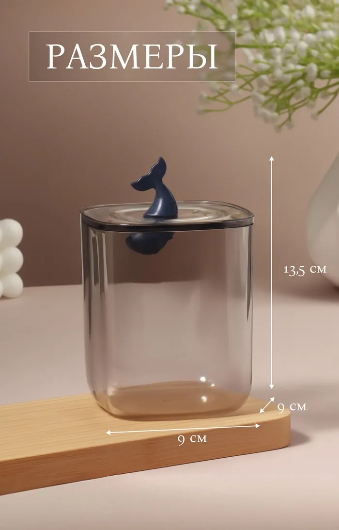 Органайзер для хранения «Кит», с крышкой, 9×9×13.5 см, в картонной коробке, синий, прозрачный — Характеристики