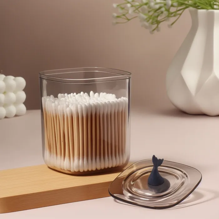 - Многофункциональность: идеально подходит для хранения ватных палочек, дисков и других мелочей, помогая поддерживать порядок в ванной комнате или на туалетном столике.