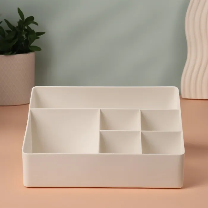 - Эффективная организация пространства: 6 секций различного размера помогут рассортировать все необходимые мелочи и косметические принадлежности.