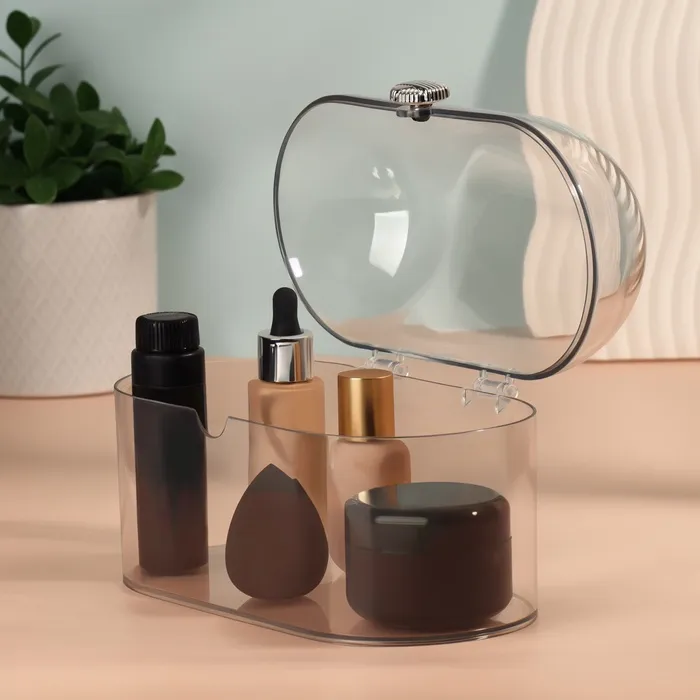 Эстетичный и вместительный органайзер легко впишется в любой интерьер и поможет вам быстро найти нужные косметические средства. Благодаря прозрачному материалу вы сможете видеть содержимое органайзера, не открывая его. Не упустите возможность приобрести органайзер для хранения косметики «Сундучок». Он станет незаменимым аксессуаром для вашей ванной комнаты или туалетного столика.