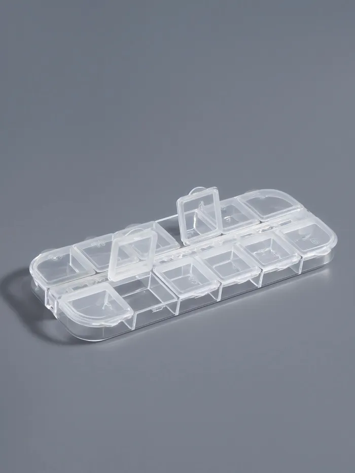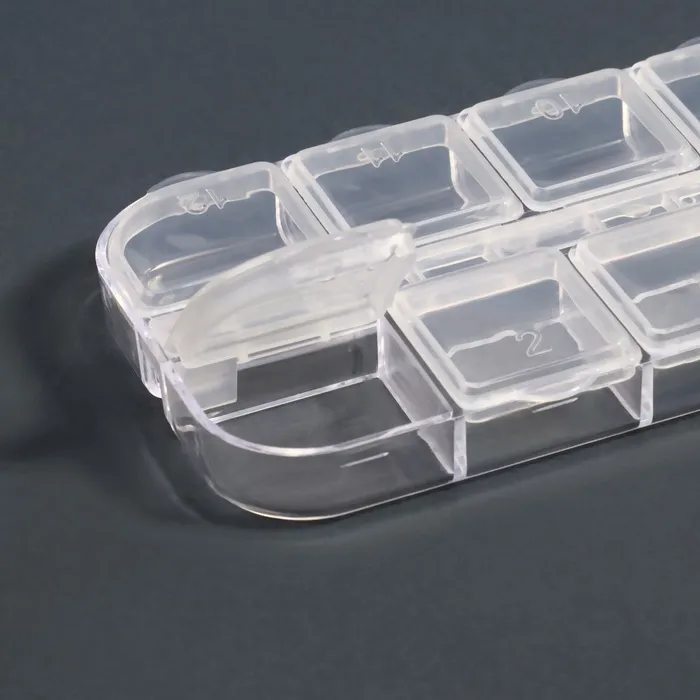 Этот компактный и функциональный органайзер с 12 ячейками станет вашим идеальным помощником в хранении мелких предметов. Прозрачные стенки позволяют легко видеть содержимое, а индивидуальные крышки на каждой ячейке гарантируют сохранность материалов и предотвращают их смешивание. Легкость и компактность делают его отличным выбором для мастеров маникюра, рукодельниц, визажистов и даже детей.