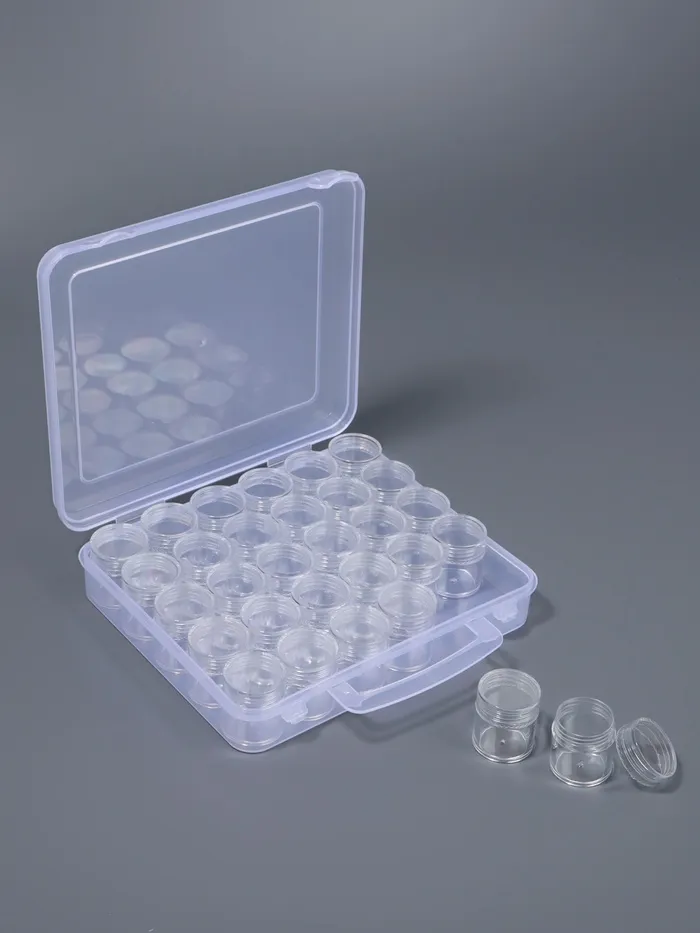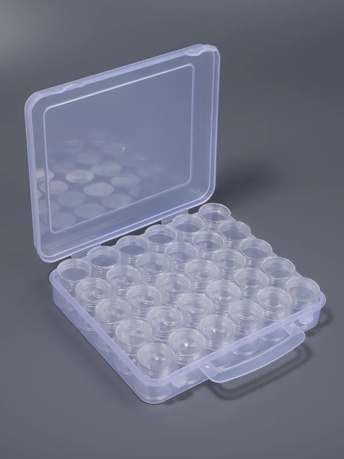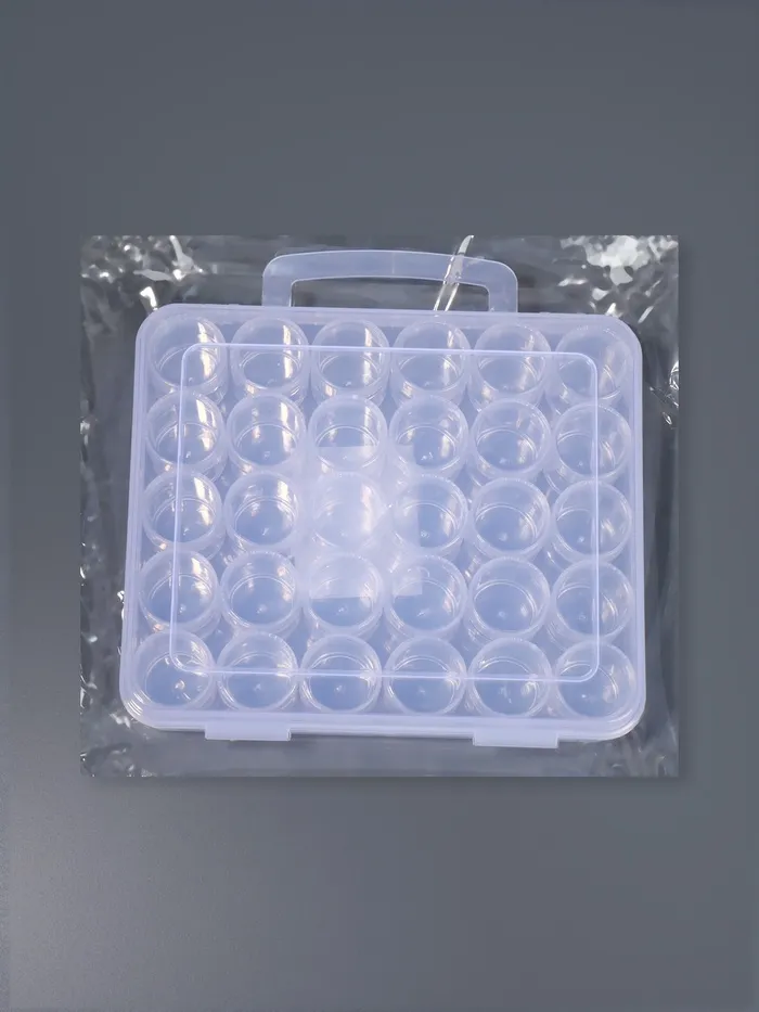Органайзер для хранения мелочей, 30 баночек, в контейнере с ручкой, 16.2×13.6×3.4 см, прозрачный — Характеристики