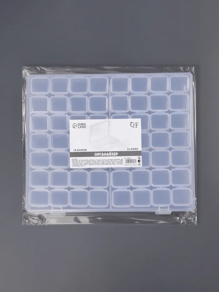 Органайзер для хранения мелочей, 56 ячеек, 21×17.5×2.7 см, прозрачный — Характеристики