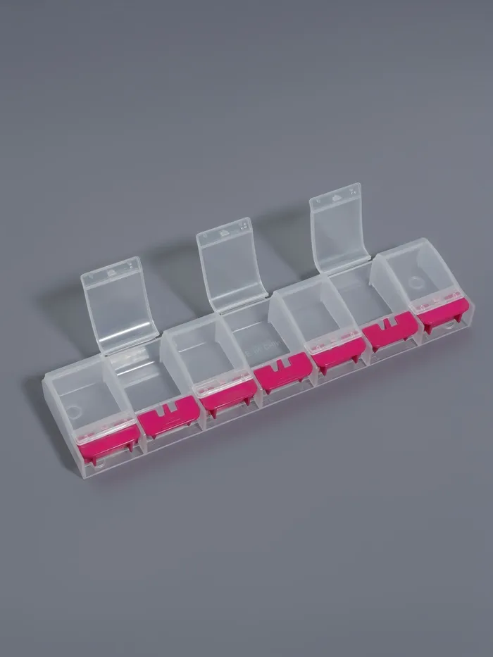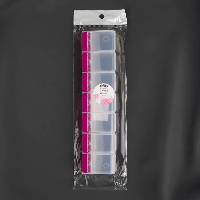 Органайзер для хранения мелочей, 7 ячеек, с кнопками, 22×5×2.5 см, розовый, прозрачный — Характеристики