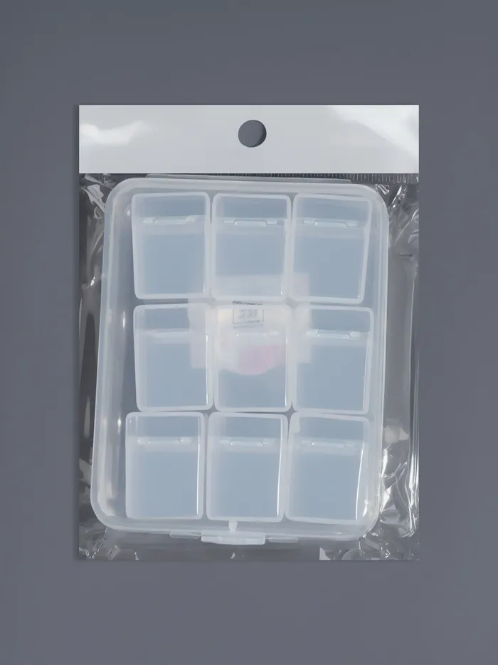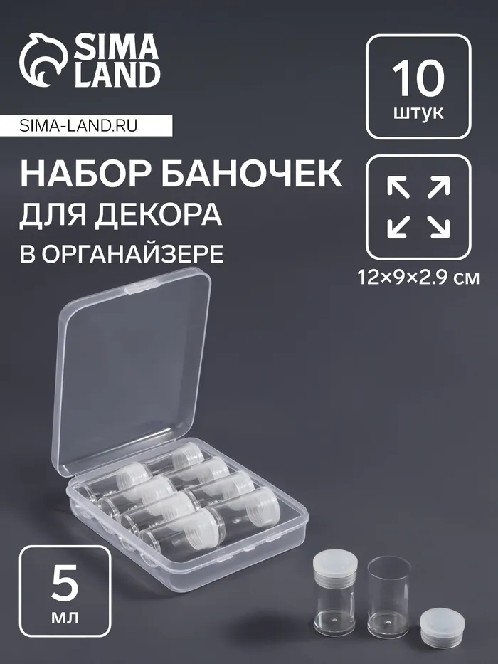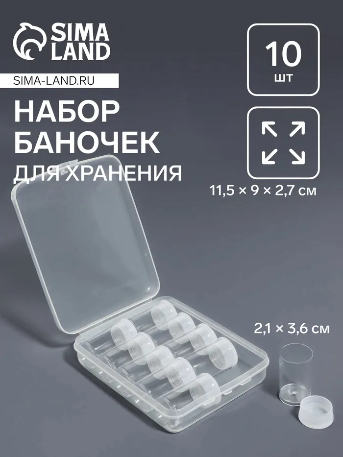Органайзер для хранения мелочей, 9 баночек, в контейнере, 11.5×9×2.7 см, прозрачный — Характеристики