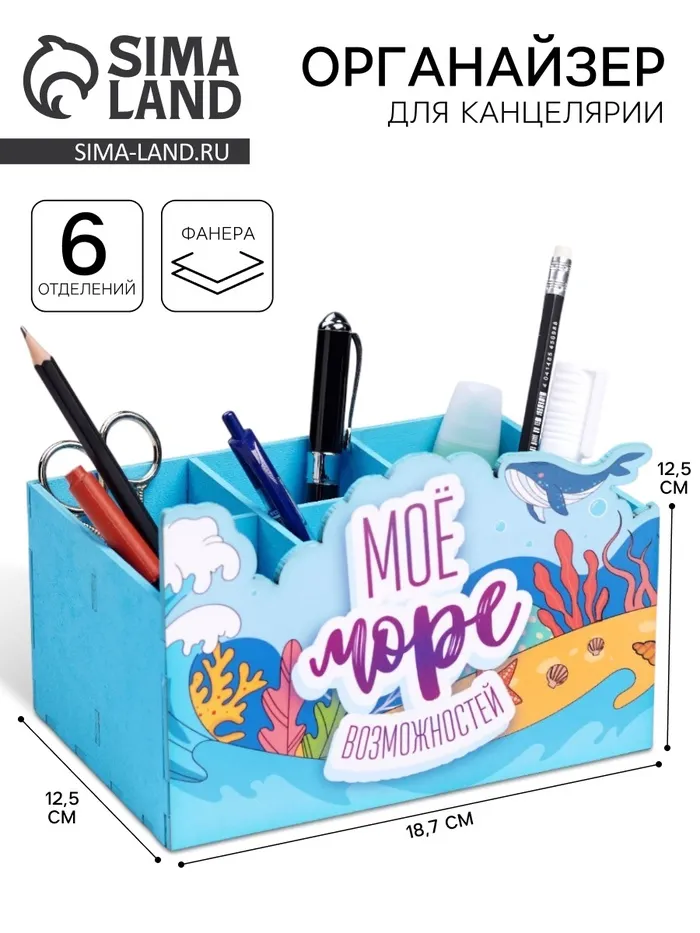 Органайзер для хранения мелочей «Моё море возможностей!» 6 отделений, 18.7×12.5×12.5 см — Характеристики