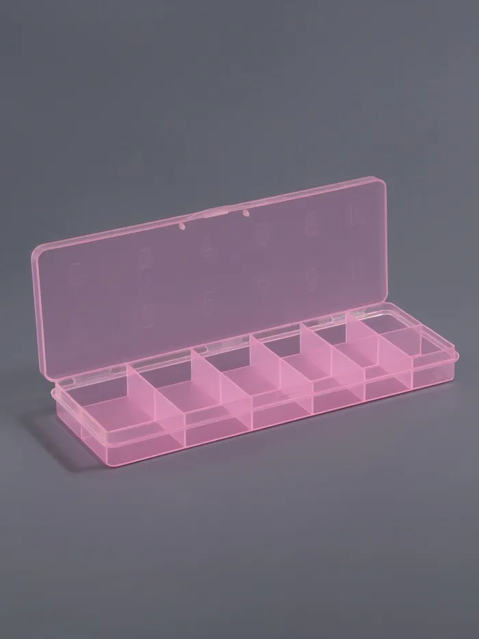 Прозрачный корпус позволяет быстро находить нужные элементы, а плотная раздвижная крышка надежно защищает содержимое от случайного высыпания. Это делает органайзер идеальным для хранения крошечных декоративных элементов, таких как стразы, пайетки или бусины, что особенно оценят мастера маникюра и визажисты.