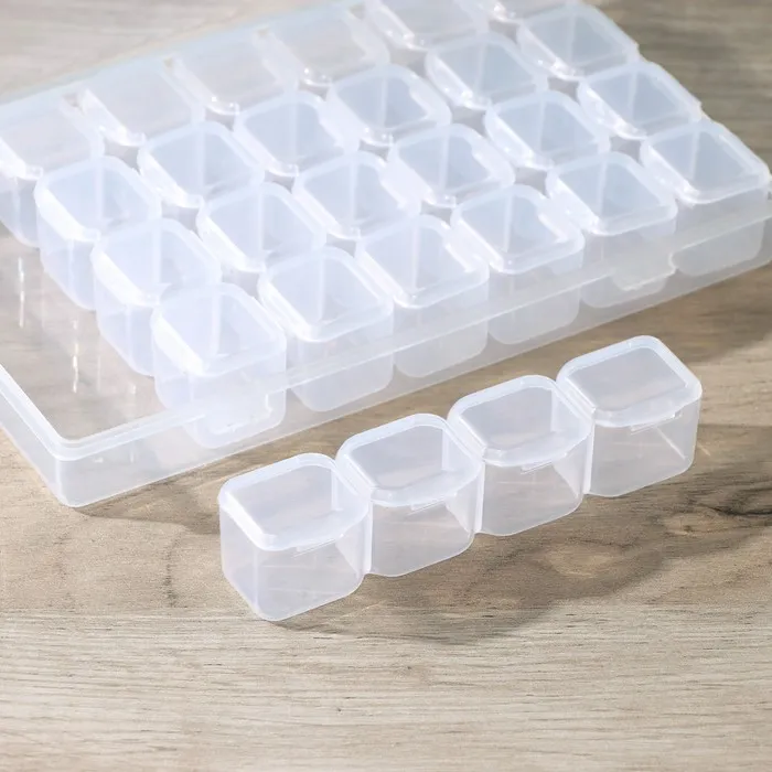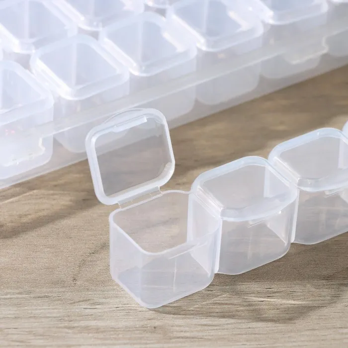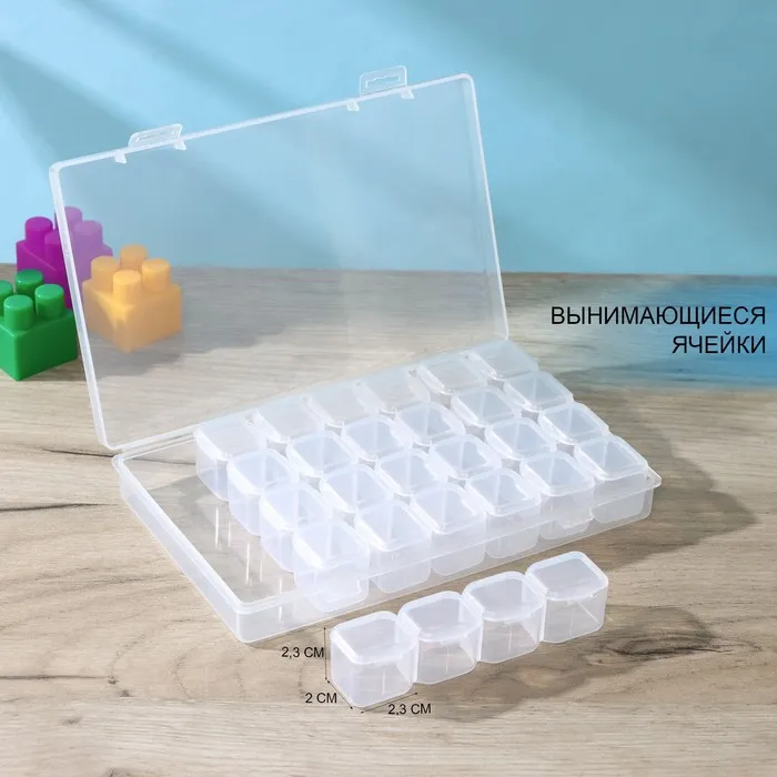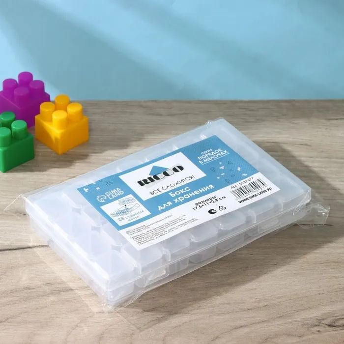 Каждая ячейка имеет отдельный отсек, что обеспечивает надежное хранение мелких предметов, таких как пуговицы, бусины, монеты, аксессуары для электроники и многое другое. Бокс также может использоваться для хранения рыболовных принадлежностей, инструментов для рукоделия и других мелочей.Изготовлен из качественного пластика, бокс обладает высокой прочностью и долговечностью. Гладкая поверхность легко моется и не впитывает запахи. Благодаря прозрачному дизайну, вы всегда сможете быстро найти нужную вещь.Бокс для хранения с 28 ячейками станет незаменимым помощником в вашем быту и поможет поддерживать порядок в доме.