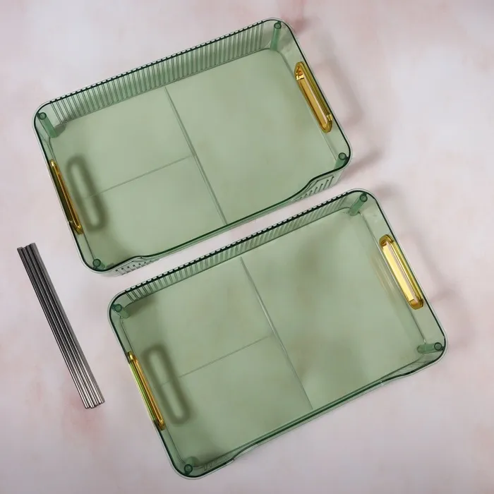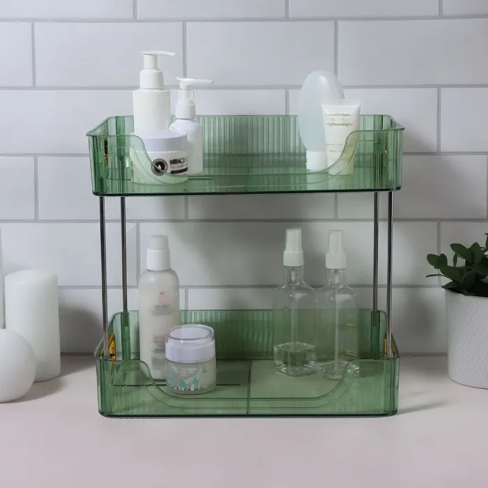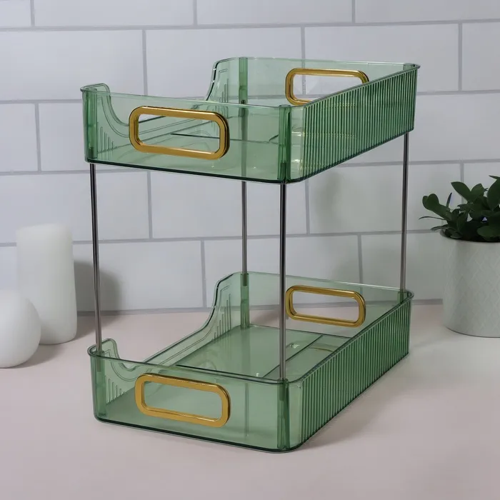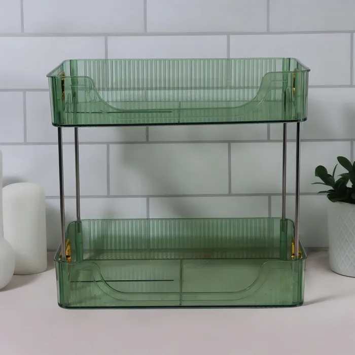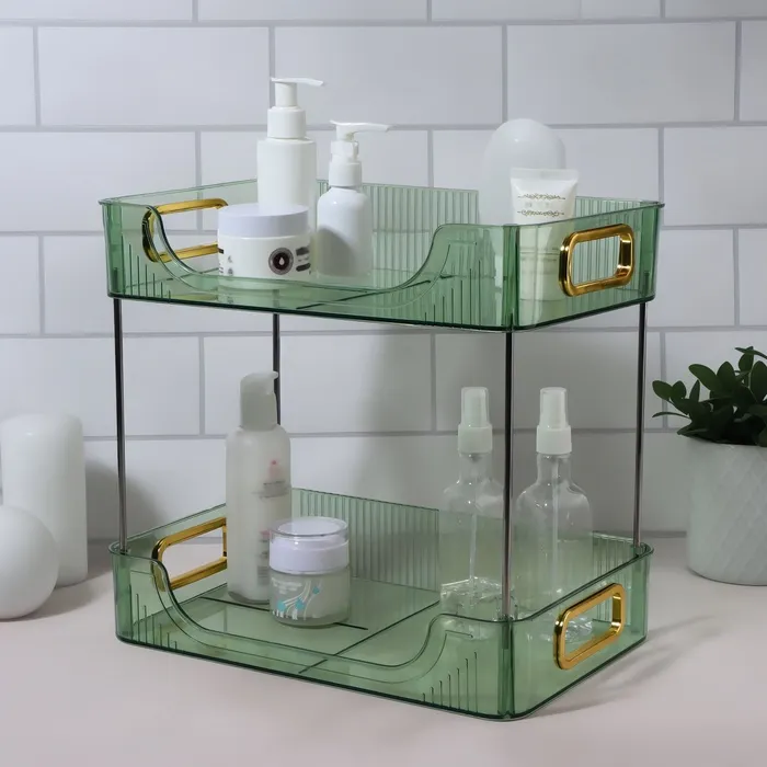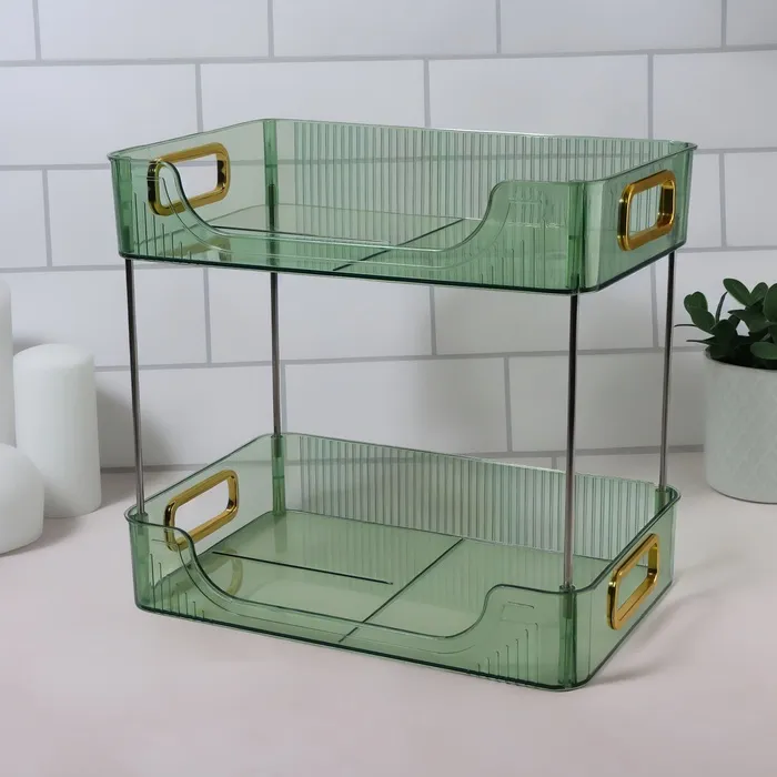 Когда нужно хранить косметику и аксессуары в одном месте, этот органайзер станет отличным решением. Благодаря продуманному дизайну и двум секциям, он помогает организовать пространство, сохраняя всё необходимое под рукой. При этом ручки золотистого цвета добавляют утонченность и стиль, делая органайзер идеальным элементом декора.
