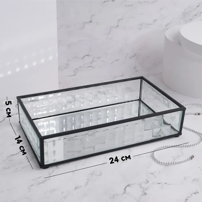 Органайзер для хранения «Square», 1 секция, стеклянный, с зеркальным основанием, 24 × 14 см, цвет прозрачный/чёрный — Характеристики