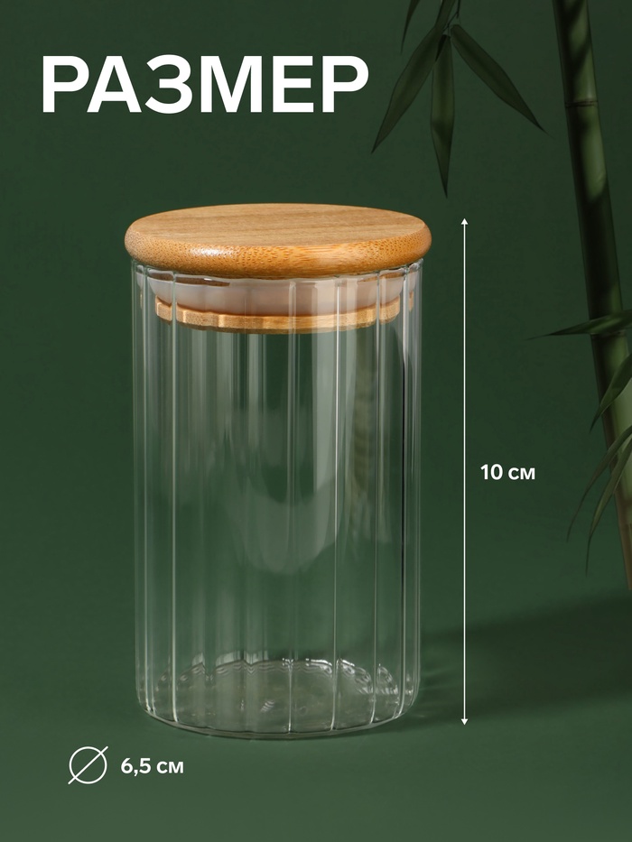 Органайзер для хранения ватных палочек BAMBOO, ребристый, с крышкой, d=6.5×10 см, прозрачный — Характеристики