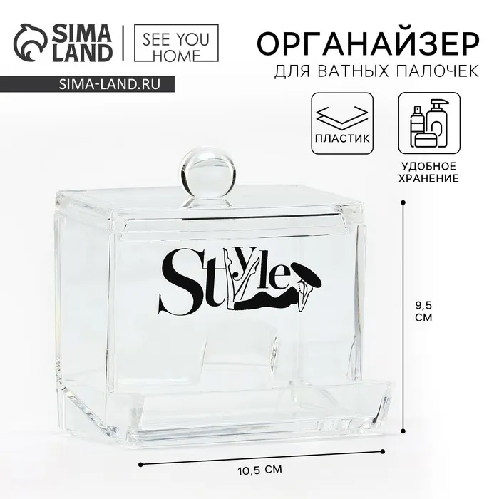 Органайзер для хранения ватных палочек «Style», 10,5 х 9,5 см, прозрачный — Характеристики