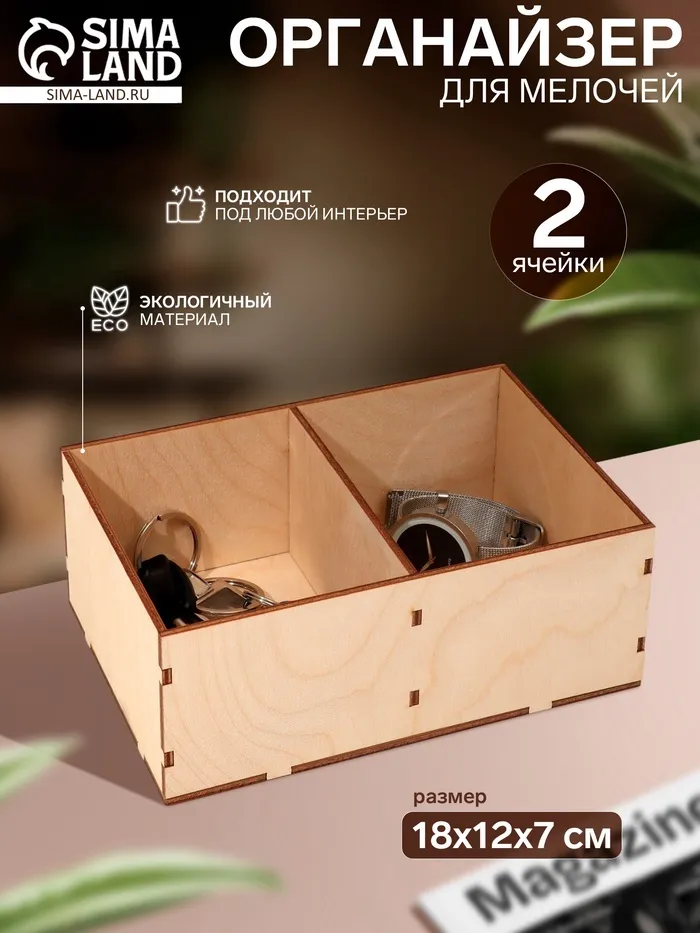 Органайзер для мелочей из фанеры с двумя ячейками — это идеальный выбор для тех, кто ценит порядок и функциональность. Он поможет организовать пространство и сэкономить время при поиске нужных вещей, добавив при этом элегантности вашему интерьеру.