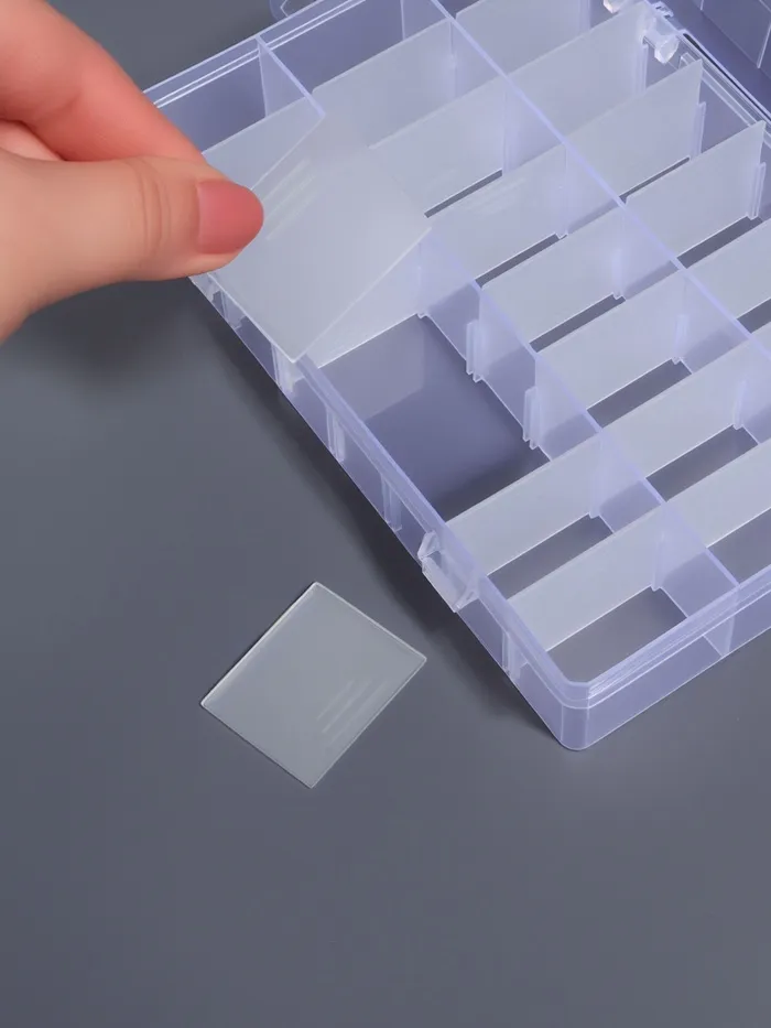 Представляем вашему вниманию компактный и практичный органайзер для декора с 24 передвижными ячейками, идеально подходящий для хранения мелких предметов: от страз и бисера до маникюрных украшений. Благодаря прозрачному корпусу вы всегда сможете быстро найти нужный элемент, а передвижные ячейки позволят адаптировать внутреннее пространство под предметы любого размера.