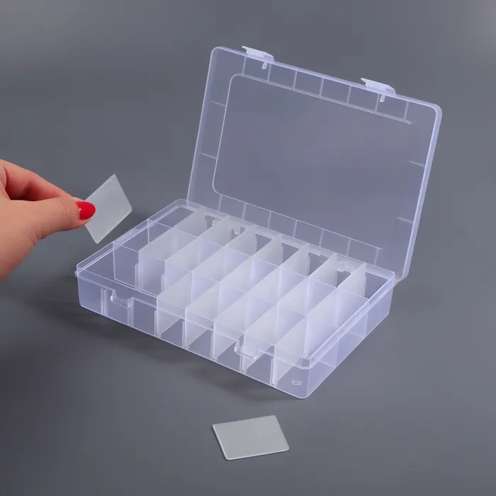 Этот органайзер от QF — идеальное решение для тех, кто ценит порядок и стильное хранение своих мелких вещей и аксессуаров для декора. Благодаря 24 ячейкам, этот компактный контейнер (размером 19,7 x 13,3 x 3,5 см) позволит вам легко систематизировать украшения, материалы для рукоделия или элементы дизайна для ногтей. Мобильные перегородки внутри ячеек дают возможность регулировать их размеры в зависимости от ваших нужд.