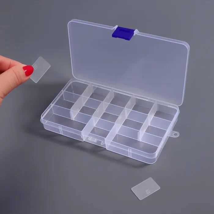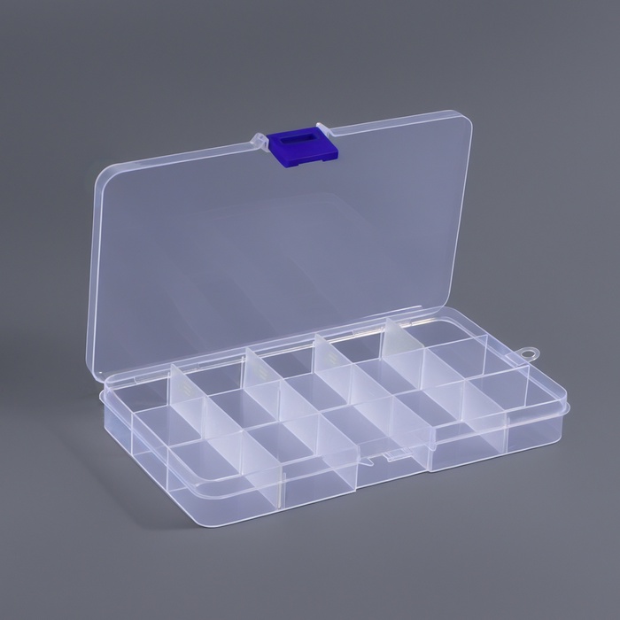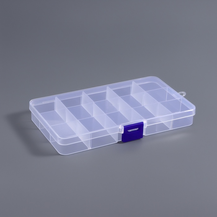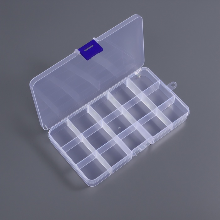 Созданный из прочного пластика, этот контейнер прекрасно подходит для хранения украшений, бусин, аксессуаров для рукоделия или домашних мелочей. Каждая из 15 секций надежно закрывается крышкой, что предотвращает выпадение содержимого даже при активном использовании.
