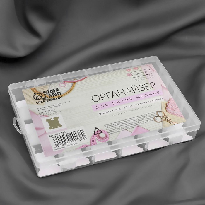 Органайзер для ниток мулине с бобинами, со съёмными ячейками, 18 отделений, 27 × 18 × 4,5 см, цвет прозрачный — Характеристики