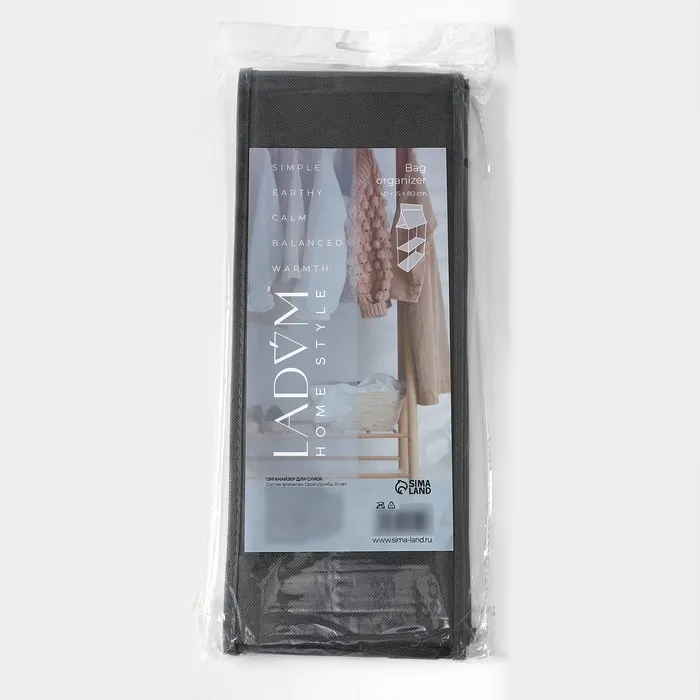 Органайзер для сумок 2 отделения LaDо́m, 40×15×80 см, серый — Характеристики