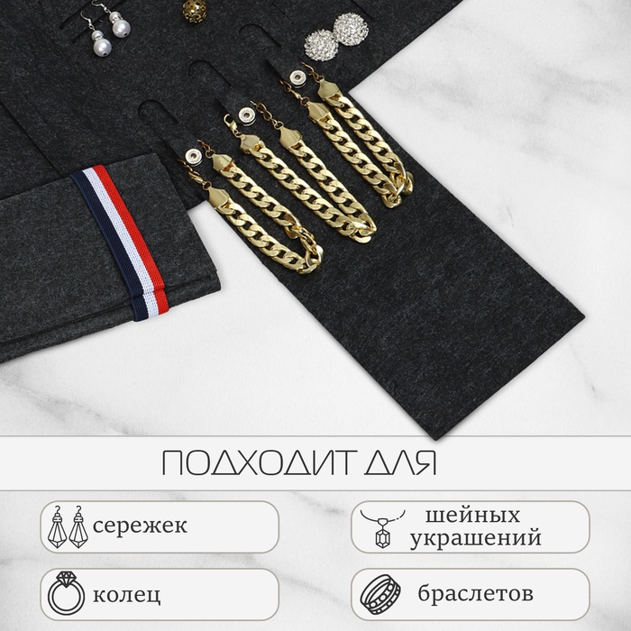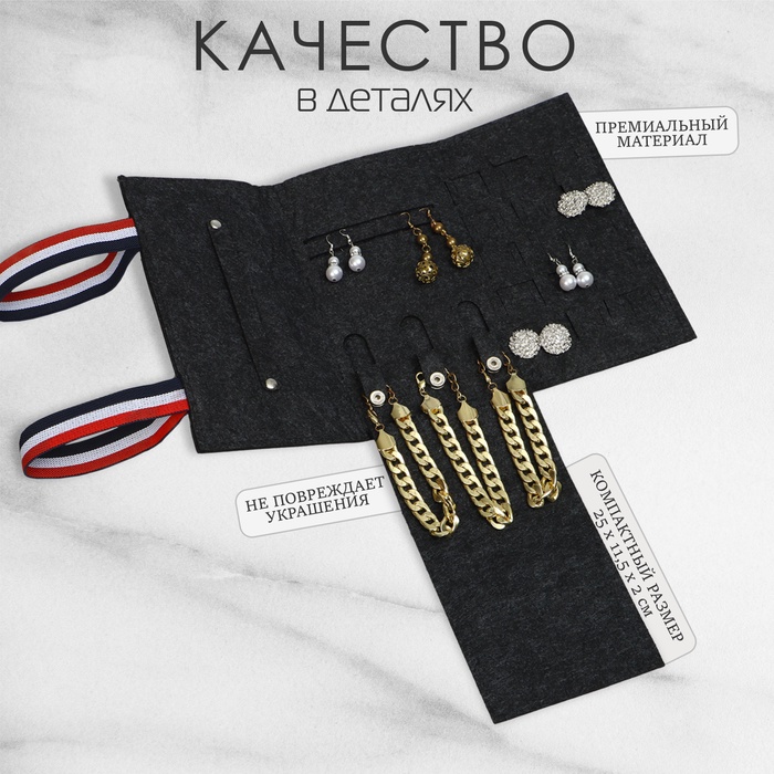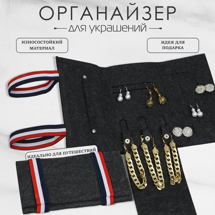 Портативный органайзер под украшения из текстиля — идеальное решение для хранения и демонстрации ваших аксессуаров во время путешествий. Этот легкий и компактный органайзер удобно помещается в чемодан, обеспечивая надежную защиту украшений от повреждений и запутывания. С множеством карманов и отделений, он позволяет аккуратно организовать хранение колец, серьег, браслетов и цепочек, обеспечивая легкий доступ к каждому изделию. Стильный текстильный материал добавляет изысканности, а продуманный дизайн делает органайзер универсальным аксессуаром для всех любителей путешествий. Этот аксессуар станет незаменимым спутником, позволяя поддерживать порядок и демонстрировать ваши украшения в любом месте.