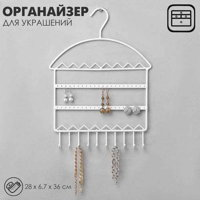 Органайзер для украшений «Вешалка», 28×6,7×36 см, цвет белый — Характеристики
