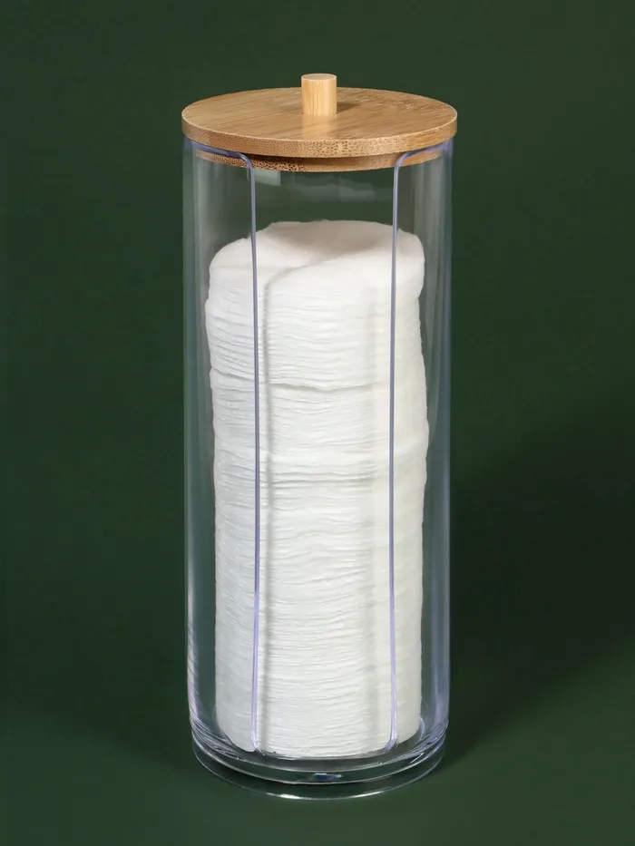 Контейнер прозрачный, поэтому локанично впишется в любой интерьер, а Вы всегда будете видеть, сколько осталось ватных дисков и палочек. Сделан контейнер из пластика. Сверху органайзер плотно закрываются крышкой, которая защищает содержимое емкости от пыли и брызг воды.