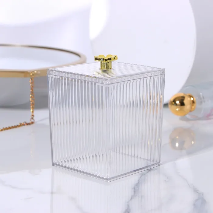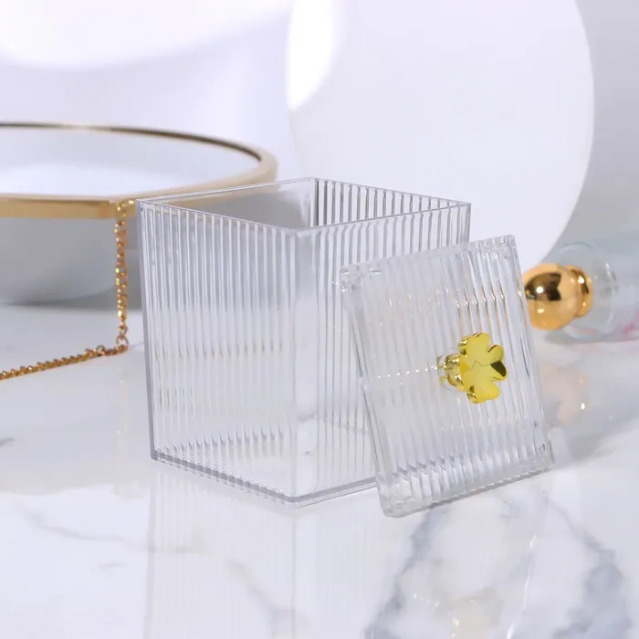 Органайзер для ватных палочек «FLOWER», с крышкой, 11×8.5×8.5 см, цвет прозрачный, золотистый — Характеристики