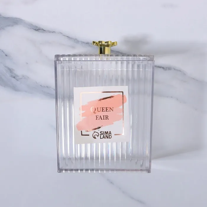 - Эстетика и функциональность: Прозрачный корпус позволяет быстро находить нужные предметы, а золотистая крышка добавляет нотку изысканности.