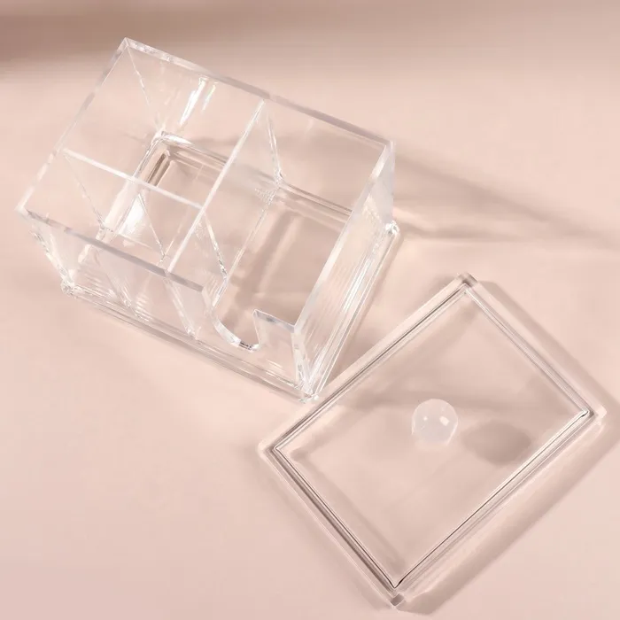 Контейнер прозрачный, поэтому локанично впишется в любой интерьер, а Вы всегда будете видеть, сколько осталось ватных дисков и палочек. Сделан контейнер из пластика. Сверху органайзер плотно закрываются крышкой, которая защищает содержимое емкости от пыли и брызг воды.