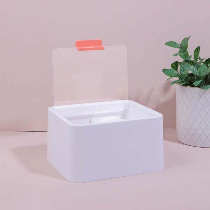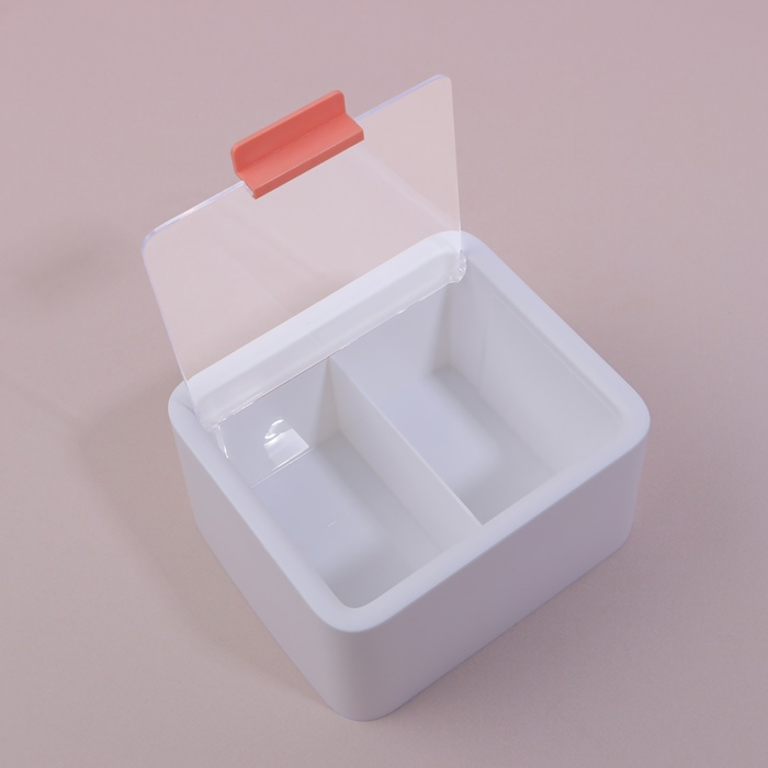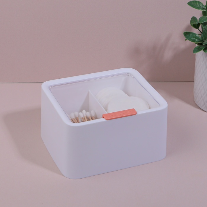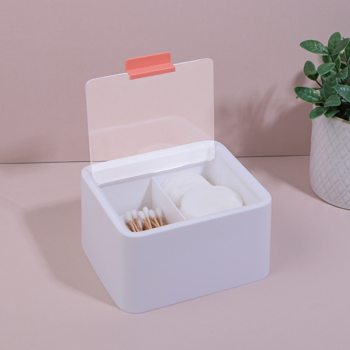Органайзер для ватных палочек и дисков, с крышкой, 2 секции, 14,5 × 13 × 8 см, цвет белый/прозрачный — Характеристики