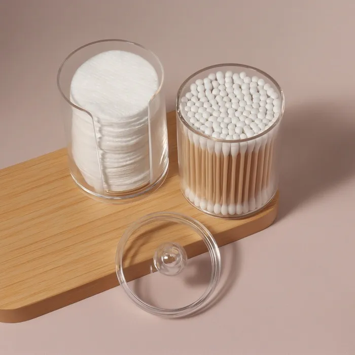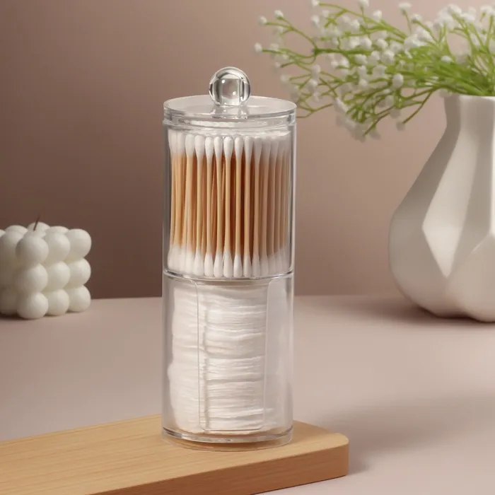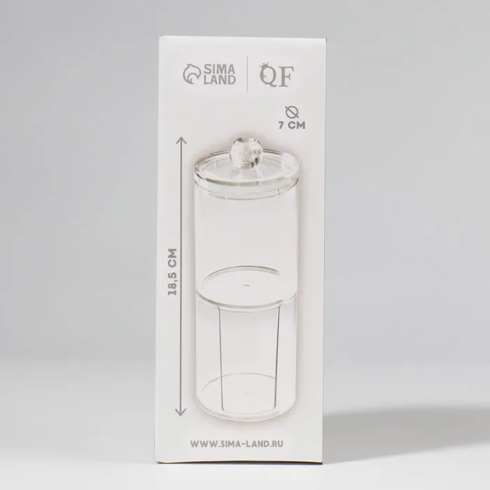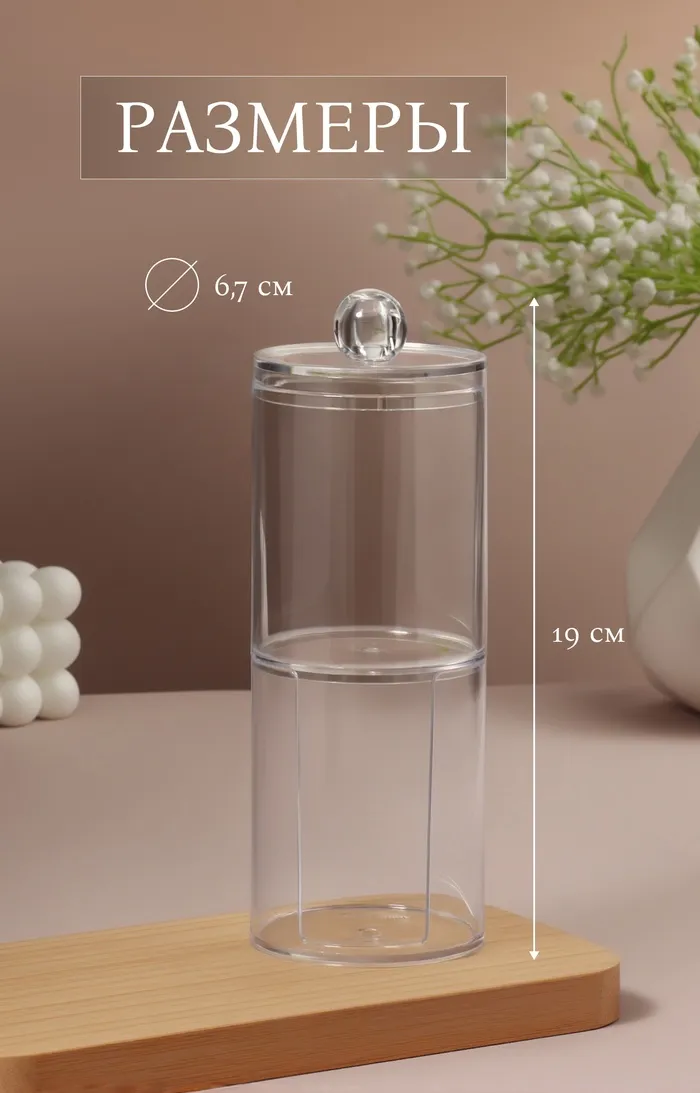 Органайзер для ватных палочек и дисков, с крышкой, 2 секции, 6.7×19 см, прозрачный — Характеристики